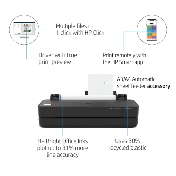 • Versatile media options: Print different sizes, from A3/B to A1/D, without the hassle of switching media sources, thanks to its smart accessories.